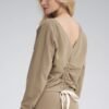 Cotton sweatshirt with a v-neck, long sleeves with a ribbed hem. Decorative tape on the back.