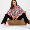 Women’s sweatshirt with long sleeves and a heart neckline. The sweatshirt is made of fabric with an interesting pattern.