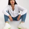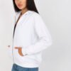 Women’s long-sleeved, zippered sweatshirt. Hooded sweatshirt, with slip pockets on the front.