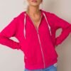 Women’s sweatshirt with a zipper, and a hood with ties. There are slip pockets on the front.
