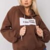 Women’s sweatshirt with long sleeves and a hood. Decorative inscription on the front.