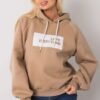 Women’s sweatshirt with long sleeves and a hood. Decorative inscription on the front.