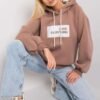 Women’s sweatshirt with long sleeves and a hood. Decorative inscription on the front.