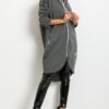 Women’s sweatshirt with an extended cut, long sleeves and a hood. The sweatshirt is zippered, with slip pockets on the sides also zippered.