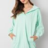 Women’s sweatshirt of an extended cut with a hood. On the front a kangaroo type pocket. Ideal proposal for everyday and not only.