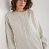 Ladies’ blouse with long sleeves and round neckline. Decorative embroidery on the front.