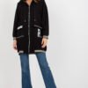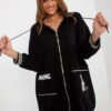 Women’s sweatshirt of an extended cut with long sleeves and a hood. The sweatshirt is zippered, with large slip pockets on the front.