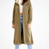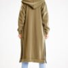 Long, loose-fitting unbuttoned sweatshirt with side slits, hood and pockets on the front of the front.