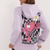 This women’s casual style sweatshirt, perfect for everyday wear, is made from a blend of cotton and polyester for comfort and durability. It features a print on the back, a small print on the front and lettering on the sleeve, which add to its modern and fashionable look. It features a standard length, long sleeves and a practical hood, perfect for colder days. Slide-in pockets offer additional functionality, while the insulated interior provides warmth and comfort. It’s the perfect choice for everyday outings when you want to combine style and comfort.