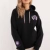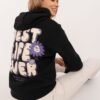 This women’s casual style sweatshirt, perfect for everyday wear, is made from a blend of cotton and polyester for comfort and durability. It features a print on the back, a small print on the front and lettering on the sleeve, which add to its modern and fashionable look. It features a standard length, long sleeves and a practical hood, perfect for colder days. Slide-in pockets offer additional functionality, while the insulated interior provides warmth and comfort. It’s the perfect choice for everyday outings when you want to combine style and comfort.