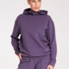 Cotton sweatshirt with long sleeves, loose collar and hood. The bottom of the sweatshirt and the sleeves are finished with ribbed cuffs.