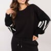 Women’s casual sweatshirt, perfect for everyday wear, combines comfort with modern style. Made of a soft blend of polyester, viscose, and elastane, it ensures comfortable wear throughout the day. The smooth pattern emphasizes the minimalist character of the sweatshirt, while the long, sweater-like sleeves with decorative lettering add originality and a fashionable touch to it. A standard length model with a round neckline, which perfectly complements everyday stylizations, creating a loose yet stylish look. This is a proposition for women who appreciate comfort and a fashionable look for everyday wear.
