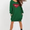 A long women’s casual sweatshirt is a combination of comfort and stylish design. It features a dominant print on the front, adorned with trendy jet stones, which give it a unique character and subtle shine. The sweatshirt is made of high-quality blend of cotton, polyester, and elastane, ensuring comfort, durability, and a delicate fit to the silhouette. The extended length model with a V-neckline provides freedom of movement and a stylish look. The long sleeves make the sweatshirt perfect for cooler days, and practical pockets hidden in the side seams add functionality. The lack of fastening emphasizes its casual character, making it a perfect choice for everyday wear, with jeans, leggings, or more elegant trousers.