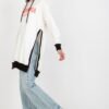 A long women’s casual sweatshirt is the perfect choice for women who appreciate comfort and simple, modern design. The model is characterized by a smooth pattern that gives it versatility, making it suitable for many different styles. Made from a high-quality blend of cotton, polyester, and elastane, it provides comfort and durability. The extended cut with side slits adds a lightweight and fashionable look. The sweatshirt is equipped with a practical hood with drawstrings for individual adjustment. On the front, there is a stylish patch with a logo, which is a subtle accent. The lack of fastening emphasizes the loose, casual character, and the long sleeves make it perfect for cooler days. Ideal for everyday wear, with jeans, leggings, or comfortable pants.