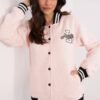 Women’s casual bomber jacket is a combination of classic and modern accents, perfect for everyday wear. Made of a blend of cotton and polyester, it offers comfort, durability, and a pleasant feeling of warmth thanks to the insulation, making it an excellent choice for colder days. The standard length model features long sleeves and a stand-up collar, adding a sporty character and protecting against the wind. The snap fastener closure provides convenience and ease of putting on. Ribbed cuffs and hem with contrasting stripes add a stylish finish to the jacket. At chest height, there is an eye-catching patch and subtle embroidery, giving the bomber jacket a unique look. The smooth pattern and universal cut make the jacket go well with jeans, skirts, or sweatpants, creating stylish, casual outfits.