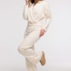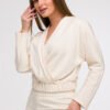 This women’s wrap-style blouse is a combination of comfort and elegance, perfect for everyday wear as well as holiday trips. Made in Poland with attention to detail, it stands out with a V-shaped front that subtly emphasizes the neckline and adds lightness to the whole silhouette. The cut is loose in the shoulders and bust, and thanks to the elastic waistband, the blouse harmoniously fits the body, accentuating feminine shapes. This cut makes the model particularly flattering for pear-shaped figures, balancing the proportions between the top and bottom. The waist-length and long sleeves make it functional and easy to style, both in a casual and elegant version.