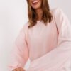 This casual women’s blouse is the perfect combination of comfort and fashionable design. Made of a soft blend of cotton and polyester, it provides comfort and durability. The smooth texture of the material makes the blouse versatile and easy to style for everyday wear. The loose, oversized cut guarantees freedom of movement and fits well on the silhouette, giving the outfit lightness and a modern character. The standard length and classic, round neckline make the blouse suitable for both jeans, sweatpants, or leggings. On the front, there is a subtle decorative stitching that adds a unique accent and distinguishes the blouse from classic models. It is an excellent choice for daily outings, relaxing at home, or casual meetings, combining a trendy look with maximum comfort.