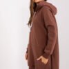 This long women’s sweatshirt is the perfect combination of casual and sporty style, created with comfort and warmth in mind for cooler days. Made of soft and durable blend of cotton and polyester, it provides warmth and a pleasant feeling of being wrapped up thanks to the additional insulation. The smooth finish model does not have a fastening, giving it a loose, casual character. The elongated length and long sleeves make the sweatshirt great for both at home and outdoor activities. The practical hood with drawstrings protects against the wind, and the kangaroo pocket at the front adds functionality and a sporty look. This versatile wardrobe piece works great for everyday wear, with leggings, jeans, or sweatpants. Comfortable, stylish, and warm, perfect for walks, outings, or home relaxation.