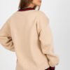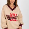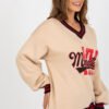 Fashionable and comfortable women’s sweatshirt in casual style is the perfect choice for everyday wear. Made of soft and durable cotton-polyester blend, it provides comfort and warmth thanks to additional insulation. The standard length model with long sleeves and a V-neckline is perfect for everyday styling. The lack of fastening gives the sweatshirt a loose, casual character, and the print on the front attracts attention and gives the whole a distinctive style. Contrast ribbing at the sleeves, neckline, and bottom of the sweatshirt is a stylish accent that emphasizes the modern look and adds originality. It is an excellent choice for jeans, leggings, or sweatpants, perfect for cooler days, both for a walk and for everyday use.
