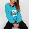 Stylish and comfortable women’s sweatshirt in a casual style is the perfect choice for everyday wear. Made of soft and durable cotton-polyester blend, it ensures comfort and warmth thanks to additional insulation. The standard length model with long sleeves and a V-neckline works perfectly in everyday stylizations. The lack of fastening gives the sweatshirt a loose, casual character, and the print on the front attracts attention and gives the whole a distinctive style. Contrast ribbing on the sleeves, neckline, and bottom of the sweatshirt is a stylish accent that emphasizes the modern look and adds originality. It is a perfect choice for jeans, leggings, or sweatpants, ideal for colder days, both for a walk and for everyday use.