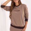 Casual women’s sweatshirt made of soft cotton and polyester blend, combining comfort with trendy design. Classic round neckline and long sleeves provide comfort, and standard length makes the sweatshirt perfect for everyday styling. The front is decorated with subtle embroidery, which gives the whole an elegant character, and contrasting finishes add a modern, bold accent. A model without fastening, perfect for casual everyday outfits.