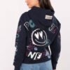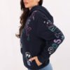 Women’s sweatshirt in a casual style, perfect for everyday occasions. Made of a blend of cotton and polyester, it provides comfort and pleasant warmth. A model of standard length with long sleeves and practical pockets inserted in the side seams. Character is given by the print with inscriptions covering the entire surface of the sweatshirt, except for the hood, where there is a subtle patch.