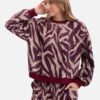 Women’s sweatshirt made of soft, brushed knit fabric with a print, with a pleasant to the touch structure with delicate hairs. The material envelops and provides warmth, while being light and comfortable to wear. The model is put on over the head, without pockets and lining. The classic round neckline emphasizes the versatile character of the sweatshirt. Long, wide sleeves finished with a cuff and a ribbed waistband give it a sporty style and ensure a comfortable fit. Loose cut, with a simple, slightly oversized silhouette, provides freedom of movement and looks great in everyday stylizations. The hip-length makes the sweatshirt a practical wardrobe element that goes well with both jeans and leggings. Designed and made in Poland from fabric produced in Łódź, it combines quality, comfort, and timeless design.