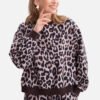 Women’s sweatshirt made of soft, brushed knit fabric with a print, with a pleasant to the touch structure with delicate hairs. The material envelops and provides warmth, while being light and comfortable to wear. The model is put on over the head, without pockets and lining. The classic round neckline emphasizes the universal character of the sweatshirt. Long, wide sleeves finished with a ribbed cuff and a ribbed waistband give it a sporty style and ensure a comfortable fit. The loose fit, with a simple, slightly oversized cut, provides freedom of movement and looks great in everyday stylings. The hip-length makes the sweatshirt a practical wardrobe item that goes well with both jeans and leggings. Designed and made in Poland from fabric produced in Łódź, it combines quality, comfort, and timeless design.