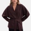 Throw-blouse made of smooth sweatshirt fabric with a weight of 260 g with a looped bottom soft, comfortable and pleasant to wear. A model without lining and pockets, in the form of an open blazer, tied at the waist with a belt passed through loops. Loose, kimono-inspired silhouette with long, wide sleeves ending in cuffs ensures comfort and freedom of movement. Thanks to the belt at the waist, the throw can be worn in both oversized and more fitted versions, allowing for various stylizations. The hip-length throw-blouse pairs perfectly with jeans, leggings, or a dress, creating a modern and comfortable look. Designed and sewn in Poland from fabric produced in Łódź, it is a combination of local quality, functionality, and timeless style.