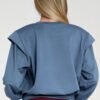 Stylish women’s oversized sweatshirt combines comfort with modern design. It has a round neckline and long sleeves with dropped shoulder line, finished with wide ribbing that gives the whole a fashionable character. Thanks to the shoulder pads, the sweatshirt subtly emphasizes the silhouette, introducing a touch of elegance to a casual look. Put on over the head, with a high ribbing at the bottom, it ensures comfortable wearing and fits nicely on the figure. This is a versatile model that will work well in both everyday stylizations and more stylish combinations.