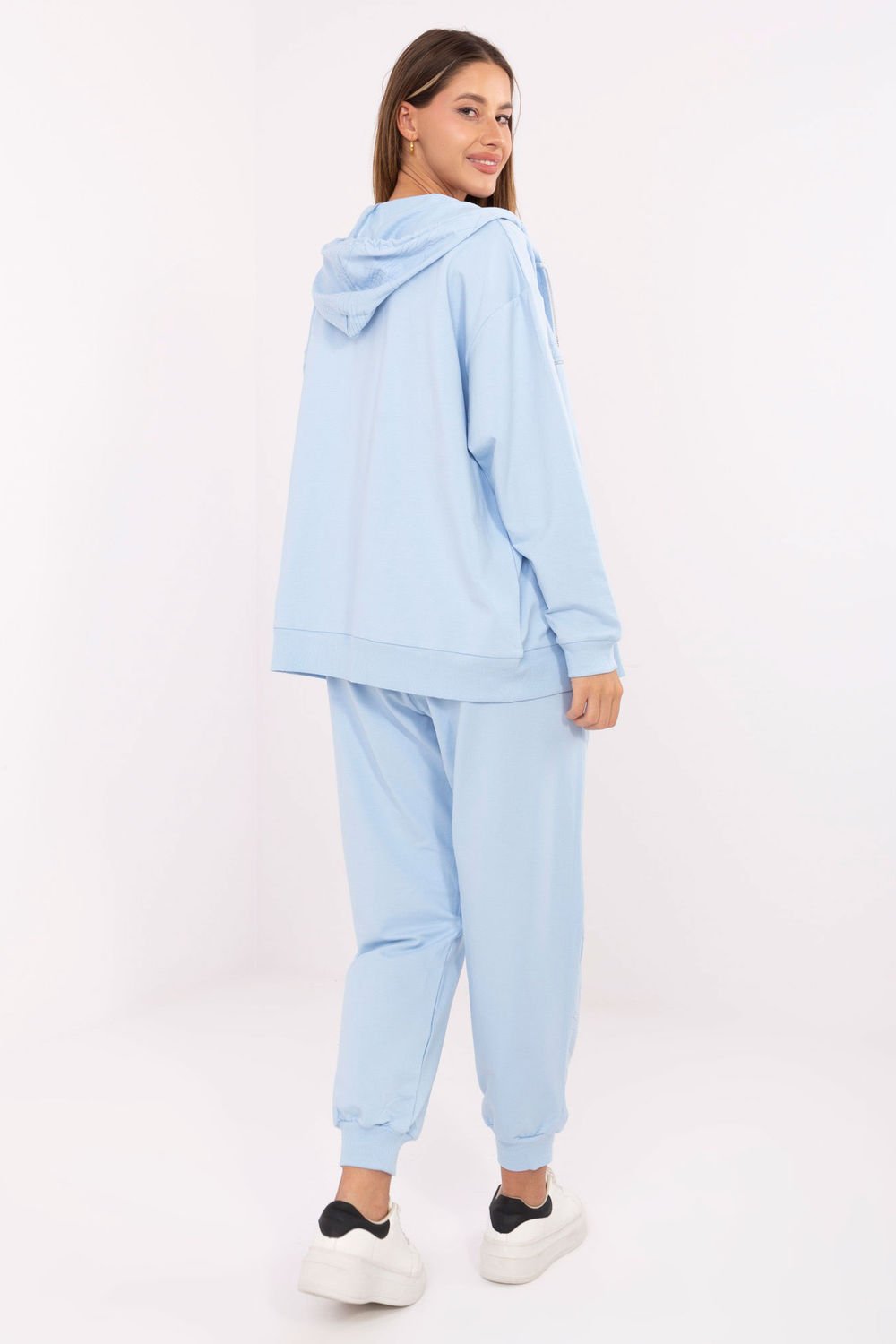 Oversize women’s sweatshirt is the perfect combination of comfort and fashionable style for everyday wear. Made of a soft blend of cotton and polyester, it is pleasant to the touch, durable, and fits perfectly on the silhouette. The loose cut provides full freedom of movement, and the braided decoration on the front adds an original, stylish character to it. The model has a round neckline and long sleeves, making it perfect for cooler days. The lack of fastening emphasizes the casual, relaxed character of the sweatshirt, and the standard length allows for easy pairing with jeans, leggings, or sweatpants.