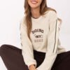 Oversize women’s sweatshirt is a stylish proposition for women who value comfort and a fashionable, urban look. Made of a soft blend of cotton and polyester, it is pleasant to the touch, durable, and perfect for everyday wear. The loose oversize cut ensures freedom of movement and a modern character. The model stands out with embroidered inscriptions on the front, which add originality to it, and sewn-on stripes on the sleeves, giving it a sporty expression. The sweatshirt has a round neckline, long sleeves, and a standard length, which makes it go well with both jeans and leggings. The lack of fastening emphasizes its casual style and comfort of use.