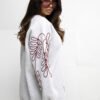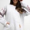 Women’s casual sweatshirt is the perfect combination of comfort and fashionable details, which will work well both in everyday wear and in casual work or meeting stylings. The model stands out with embroidered decorations on the sleeves, giving the sweatshirt a unique, stylish character. Made of a blend of cotton and elastane, it is soft, stretchy, and pleasant to the touch. Standard length, long sleeves, and insulation make it an ideal choice for cooler days. The round neckline emphasizes the classic form, and the puffy sleeve adds a fashionable, feminine touch. The sweatshirt has no closure, it is put on over the head, emphasizing its casual character. A practical element is the kangaroo pocket on the front, ideal for storing small items or warming hands. This is a stylish and comfortable proposition for women who appreciate the combination of comfort with interesting details.