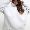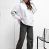 Casual women’s loose blouse is a perfect choice for everyday stylizations when comfort and a relaxed look are important. Its standard length and long sleeves make it perfect for cooler days, and the insulation provides additional thermal comfort. The model made of a blend of cotton and elastane is soft, pleasant to the touch, and flexible, which makes it perfectly fit the silhouette, without restricting movement. The hood adds a sporty character and comes in handy in bad weather. The blouse does not have a fastener, it is put on over the head, which emphasizes its minimalist, relaxed style. The lack of pockets gives it a simple, clean form, and a small patch at the bottom on the left side adds a subtle, decorative accent. This is an ideal proposition for women who appreciate comfort, simplicity, and timeless casual design.
