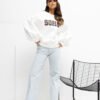 Stylish women’s sweatshirt with a casual character, perfect for everyday, comfortable stylizations. Made of a soft blend of cotton with elastane, it provides comfort and a good fit to the silhouette. The model has a standard length, long sleeves, and a classic, round neckline. The sweatshirt is distinguished by an eye-catching, vertical slit on the back, which adds a modern and unconventional character to it. On the front, there is an embroidered inscription serving as a fashionable accent. The puffed sleeve gives the whole lightness and a feminine style, and the light lining makes the sweatshirt perfect for cooler days as well. A model without fastening, comfortable and ideal for everyday wear.