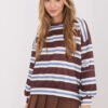 Stylish women’s sweatshirt with a casual character, perfect for everyday wear. It stands out with a fashionable striped pattern, which gives it a modern and universal look. Made of pleasant to the touch viscose with the addition of elastane, making it soft, stretchy, and comfortable to wear all day long. A standard length model, with long sleeves and a round neckline, which fits classically on the silhouette. The sweatshirt does not have a fastening, which emphasizes its casual style and ease of use. An additional advantage is the decorative patch on the sleeve, giving the whole a unique character. It will work great in everyday stylizations, both with jeans and fabric trousers or leggings.