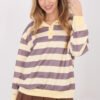 Casual women’s sweatshirt with a timeless and universal style, ideal for everyday styling. The model stands out with a trendy striped pattern, which adds freshness and a slightly sporty character to the whole. The sweatshirt is made of high-quality viscose with elastane, which ensures softness, elasticity, and high wearing comfort. The standard length cut with long sleeves fits well on the silhouette and will work throughout the season. The button closure at the front in a polo style combined with a classic collar gives the sweatshirt an elegant yet casual look. This is an excellent proposition for women who appreciate comfort combined with well-thought-out details. The sweatshirt pairs well with jeans, trousers, or a skirt, creating stylish everyday outfits.