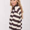 Casual women’s sweatshirt with a timeless and universal style, perfect for everyday styling. The model stands out with a trendy striped pattern, which adds freshness and a slightly sporty character to the whole. The sweatshirt is made of high-quality viscose with the addition of elastane, which ensures softness, elasticity, and high wearing comfort. The standard length cut with long sleeves fits well on the silhouette and will work throughout the season. The button closure at the front in a polo style combined with a classic collar gives the sweatshirt an elegant yet casual look. This is an excellent proposition for women who value comfort combined with well-thought-out details. The sweatshirt pairs well with jeans, fabric trousers, or a skirt, creating stylish everyday outfits.