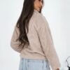 Casual women’s sweatshirt made of soft teddy material is a perfect choice for everyday wear. Made of pleasant to the touch polyester, it provides comfort and warmth on cooler days. A model of standard length with long sleeves, equipped with a practical stand-up collar protecting the neck from the cold. The sweatshirt is fastened with a zipper, which increases the convenience of use and allows for easy matching to the styling. The smooth pattern gives it a universal character, and the inserted pockets are a functional addition for small items or warming hands. Ideal for everyday, casual sets with jeans, leggings or tracksuits.