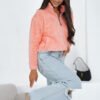 Casual women’s sweatshirt made of soft “teddy bear” material is a perfect choice for everyday wear. Made of pleasant to the touch polyester, it provides comfort and warmth on colder days. A model of standard length with long sleeves, equipped with a practical stand-up collar protecting the neck from the cold. The sweatshirt fastens with a zipper, which increases comfort and allows for easy adjustment to the styling. The smooth pattern gives it a universal character, and the slip pockets are a functional addition for small items or warming hands. Ideal for everyday, casual outfits with jeans, leggings or tracksuits.