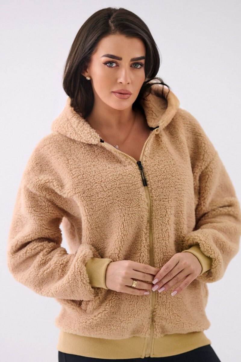 Casual women’s sweatshirt in the style of a “sheep” is the perfect choice for everyday wear on cooler days. Made of soft and pleasant to the touch polyester, it provides comfort and a pleasant feeling of warmth. A model of standard length with long sleeves, equipped with a practical hood protecting against wind and cold. The sweatshirt fastens with a zipper, which increases usability and allows for easy styling adjustment. Additional advantages are the ribbing at the bottom and at the sleeves, which improve fit and prevent heat loss. The smooth pattern gives the sweatshirt a universal character, and the slip pockets are a functional addition for small items or warming hands. Ideal for everyday, casual outfits.