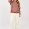 Comfortable women’s hoodie is the perfect choice for women who value comfort and a casual style. The smooth cut makes the model universal and easy to combine with jeans, leggings or sweatpants. The hoodie has a standard length and long sleeves, which provides comfort and perfect fit for everyday stylizations. The practical hood gives it a sporty character and will be perfect for cooler days. The model is put on over the head without fastening, which emphasizes its casual style. A functional element is the kangaroo pocket on the front, ideal for small items or warming hands. Attention is also drawn to the decorative embroidery on the sleeve and on the front on the left side at chest height, which adds a subtle and feminine touch to the hoodie. Made of high-quality cotton and polyester blend, the hoodie is soft, pleasant to the touch and durable, making it perfect for everyday use. A must-have in the wardrobe of every lover of comfortable and stylish solutions.
