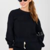A women’s sweatshirt with a short cut is a stylish and comfortable proposition in a casual edition. It will work great in everyday stylizations with jeans, leggings, and sweatpants. The smooth pattern gives it a universal character, so you can easily match it with different wardrobe elements. The model is made of high-quality cotton and polyester blend. This composition ensures wearing comfort, softness to the touch, as well as durability and resistance to creasing. The sweatshirt has a classic, round neckline and long sleeves with a trendy, puffy cut, which gives the whole a feminine and modern character. The lack of fastening emphasizes the minimalist style, and the decorative inscription placed on the left sleeve is a subtle, designer accent. It is an ideal proposition for women who appreciate comfort combined with fashionable details.