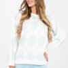 Women’s casual blouse made of buttery material is a combination of comfort and style. The fabric is soft, delicate, and exceptionally pleasant to the touch, providing maximum comfort for the whole day. The standard length model has a classic, round neckline and long sleeves, making it perfect for everyday styling. The geometric pattern gives the whole a modern character and attracts attention, adding originality to the styling. The blouse does not have a fastening, emphasizing its loose fit. Made of a combination of polyester, viscose, and elastane, it combines durability with flexibility and lightness, perfectly fitting the silhouette. It is an excellent choice for everyday wear with both jeans and sporty pants or a skirt.