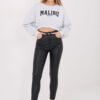 A women’s casual style sweatshirt is a perfect choice for everyday wear for women who value comfort and a fashionable look. The shorter cut gives it a modern character and pairs well with high-waisted pants and skirts. The model has long sleeves and a classic, round neckline, ensuring comfort and versatility in styling. The lack of fastening makes the sweatshirt practical and easy to put on. On the front, there are decorative inscriptions that give the whole a distinctive, fashionable accent and emphasize the casual character of the model. The sweatshirt is made of high-quality cotton and elastane blend, making the material soft, elastic, and pleasant for the skin. It is an ideal proposition for comfortable, stylish, and timeless everyday casual styling.