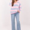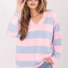 Stylish women’s sweatshirt with a casual character is an excellent choice for everyday wear. It will work well in urban stylings, as well as during relaxation or meetings with friends. A bold pattern in colorful stripes gives it a fashionable, fresh look and attracts attention. The standard length model provides comfort and freedom of movement, while the long sleeves make it perfect for cooler days. The V-neck subtly accentuates the neck and adds a feminine touch to the overall look. The sweatshirt has no fastening, making it easy to put on and it fits nicely on the silhouette. Made of high-quality cotton and polyester blend, it combines the softness, breathability, and durability of the material. It is a versatile wardrobe piece that will complement both jeans and fabric pants or skirts, creating comfortable and stylish outfits for any occasion.