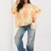 Stylish oversized women’s blouse is the perfect choice for women who value comfort and a casual, relaxed style. The looser cut ensures comfortable wear and fits current trends, giving the outfit a nonchalant character. The model of standard length fits perfectly on the silhouette and pairs well with fitted jeans, leggings, as well as skirts or shorts. Long sleeves increase the functionality of the blouse, making it suitable for cooler days. The round neckline gives the whole a classic finish and makes the blouse versatile and comfortable for everyday use. The lack of fastening emphasizes its minimalist character and makes it easy to put on quickly. The geometric pattern is a modern, eye-catching accent that distinguishes the model and adds originality to the outfit. It is an excellent choice for everyday wear, comfortable, stylish, and full of character.