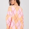 Stylish oversized women’s blouse is the perfect choice for women who value comfort and a casual style. The looser cut ensures wearing comfort and fits into current trends, giving the outfit a nonchalant character. The model of standard length beautifully fits the silhouette and pairs well with fitted jeans, leggings, as well as skirts or shorts. Long sleeves increase the functionality of the blouse, making it suitable for cooler days. The round neckline gives the whole a classic finish and makes the blouse universal and comfortable for everyday wear. The lack of fastening emphasizes its minimalist character and makes it easy to put on quickly. The geometric pattern is a modern, eye-catching accent that distinguishes the model and adds originality to the outfit. It is a perfect choice for everyday wear – comfortable, stylish, and full of character.