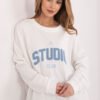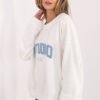 Fashionable women’s oversized blouse, perfect for everyday, casual stylizations. The loose cut provides freedom of movement and high wearing comfort, and the standard length makes the blouse fit nicely on the silhouette and goes well with many outfits. The model has a classic, round neckline and long sleeves, making it perfect for cooler days. The dominant design elements are embroidered and embossed inscriptions on the front, giving the blouse a fashionable, modern character. Made of high-quality cotton, the blouse is soft, skin-friendly, and ensures comfort throughout the day. The model without fastening emphasizes a casual, sporty style, making it a great match with both jeans, leggings, or sweatpants.
