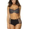 A two-piece swimsuit with high waisted bottoms – lovely and very comfortable. A pinch of retro style in the hottest trends on the beach.Bra with padded cups, underwire and built-in permanent push up filling, focuses on the nice collection and breast lift, with the simultaneous optical enlargement. The mesh openwork on the cups looks great. Strapless straps with adjustable length, not removable. High briefs, with openwork inserts on the sides. Front smooth, with limited elasticity, subtly shapes the body.